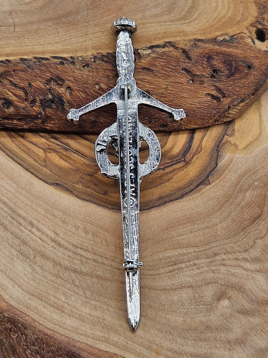 Large Vintage Scottish Pin Kilt Brooch Sword with Coat of Arms, VGC