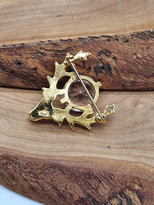 Vintage Scottish Brooch Deer and Thistle Large Lavender Gemstone