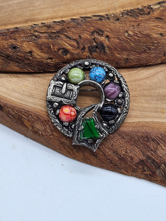 Vintage Large Scottish Broosh with gemstones, Miracle, VGC