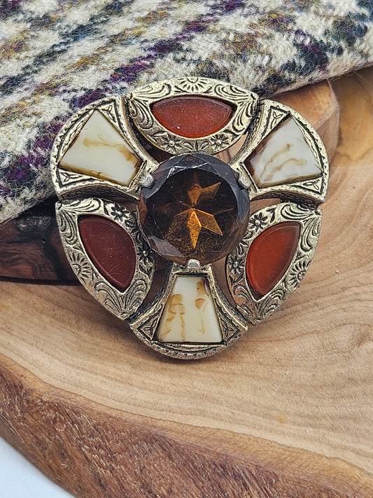 Vintage antique Small Scottish Brooch with Central Ocher Colour Insert