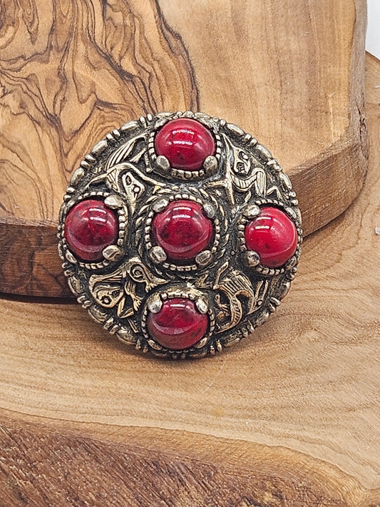 Vintage Large Scottish Brooch with red gemstones, Miracle, Viking, VGC, L1092