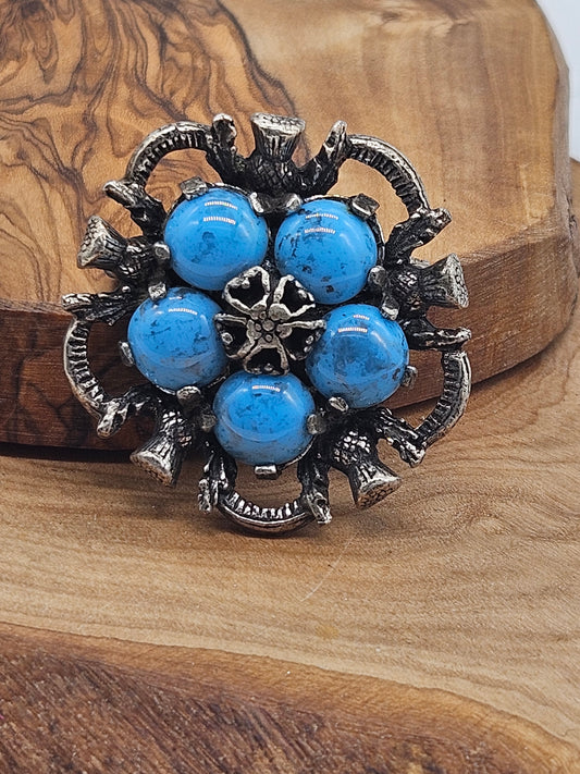 Vintage Scottish Brooch with ornament, Royal Feathers and turquoise, VGC
