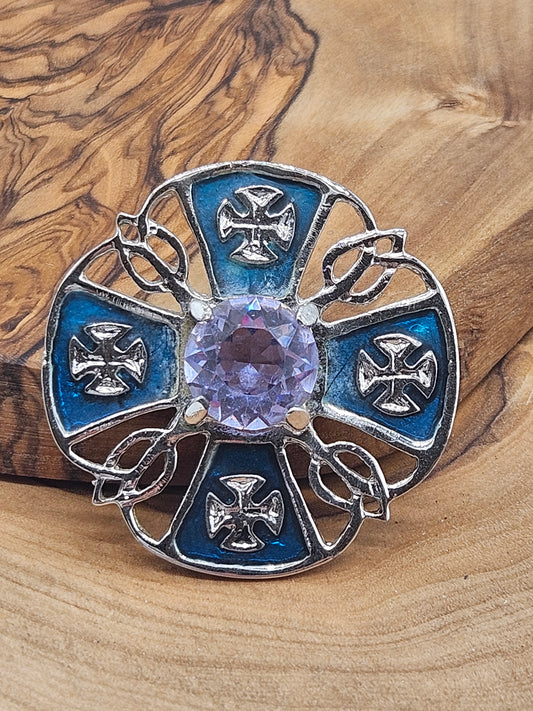 Vintage Enamel Scottish Brooch with Amethyst, VGC, L1097