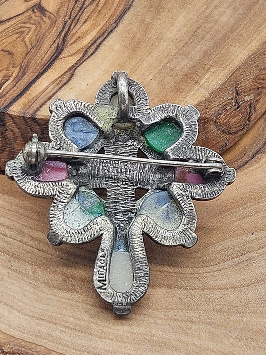 Vintage Scottish Brooch/Pendant Celtic Cross with Stone inserts, VGC, L1099