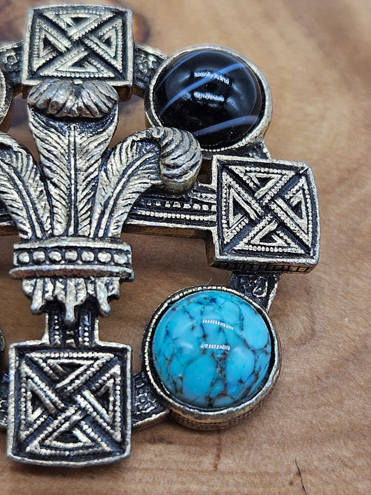 Vintage Scottish style brooch - The Cross with Scottish gemstones.