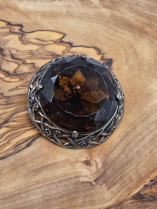 Vintage Large Circle Celtic brooch/pendant with faceted gemstone