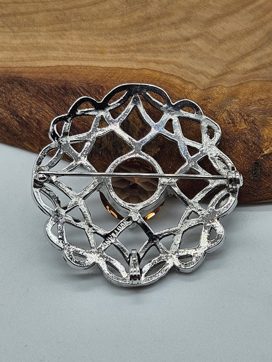 Vintage Large Scottish brooch with Large Amber Colour gemstones.