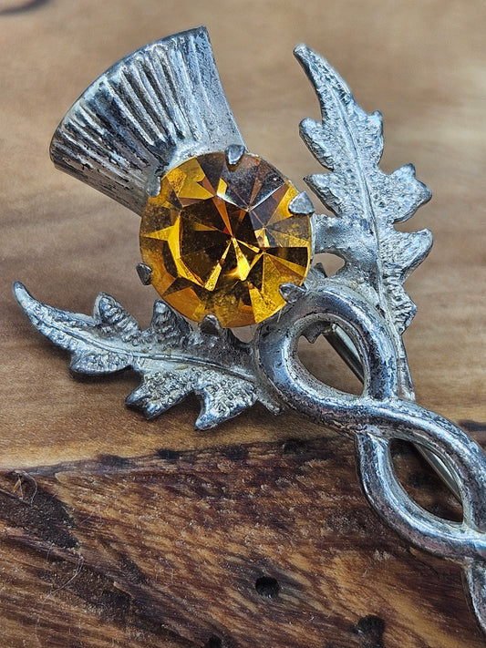Vintage Scottish style Kilt Pin/ brooch - The Thistle with yellow gemstone.