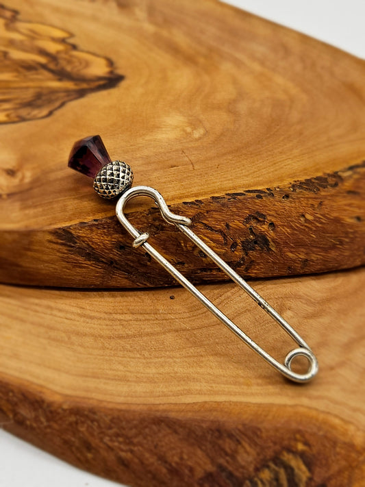 Vintage Scottish style Kilt Pin/ brooch - The Thistle with purple gemstone.