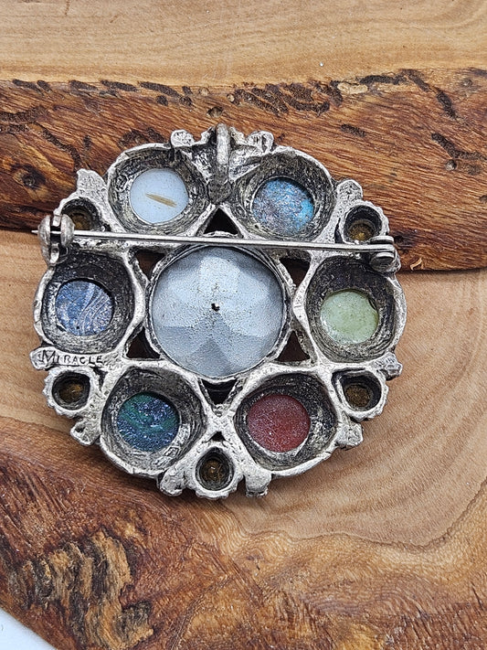 Vintage Large Circle Celtic brooch with Scottish gemstones