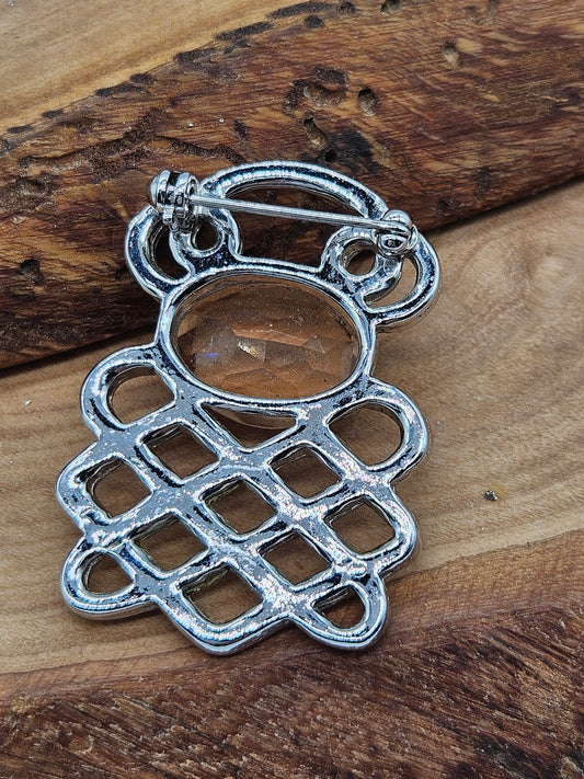 Vintage Celtic Knots brooch/pendant with faceted gemstone
