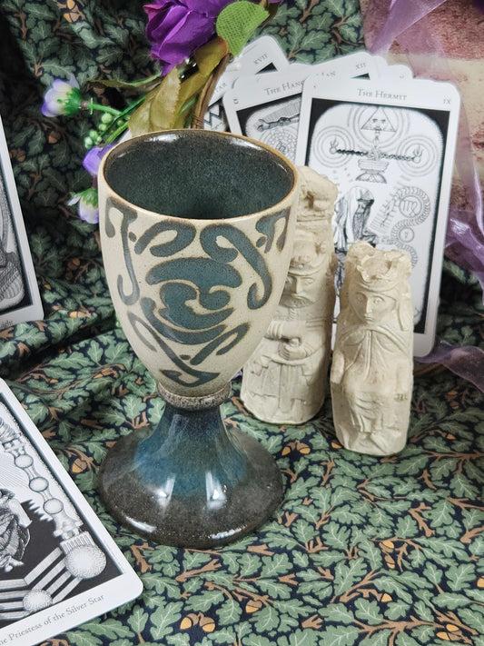 Vintage Studio Pottery elegant goblet with Celtic ornament, VGC N200