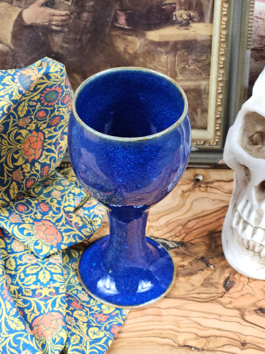 Vintage Studio Pottery Fully glazed Royal Blue goblet VGC L2