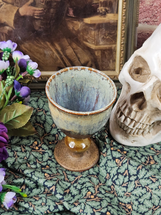 Vintage Studio Pottery Beautifully glazed Brown Tall goblet with VGC
