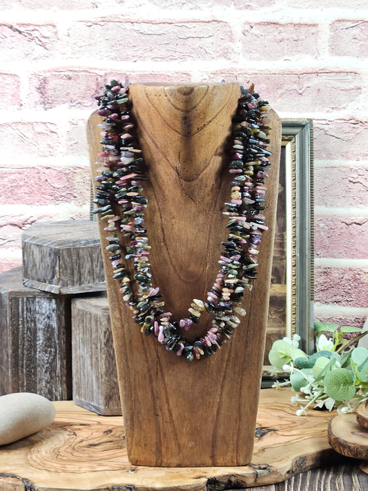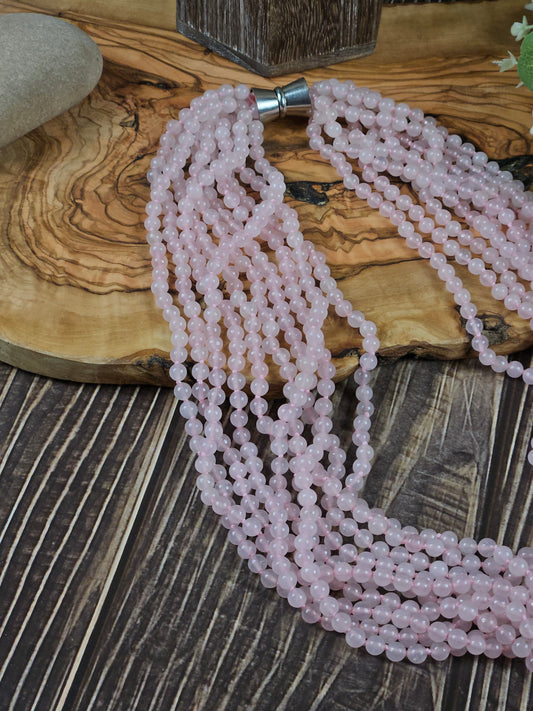 Layered (140g) necklace beads made of natural rose quartz, amethyst, chalcedony