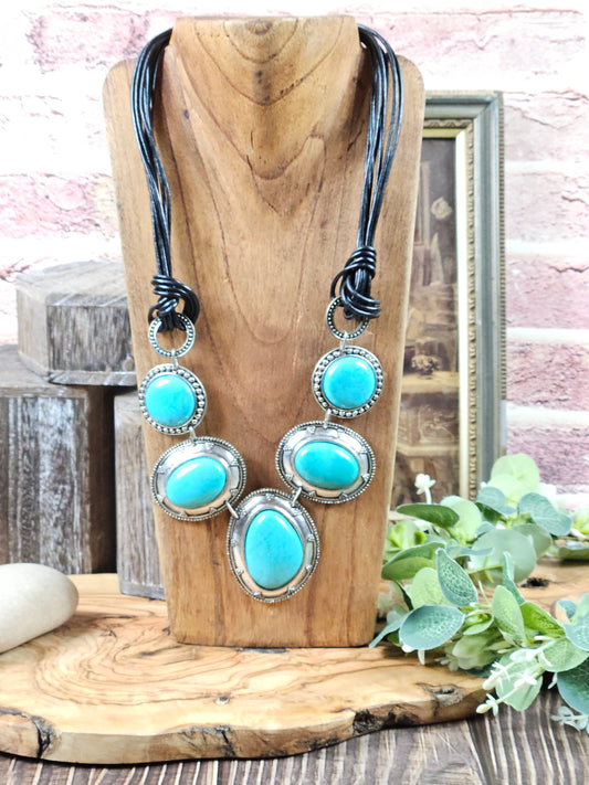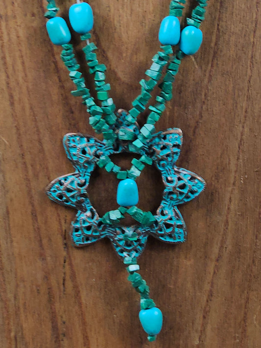 Vintage Ethnic Style Necklace with Faux Blue Turquoise and malachite.