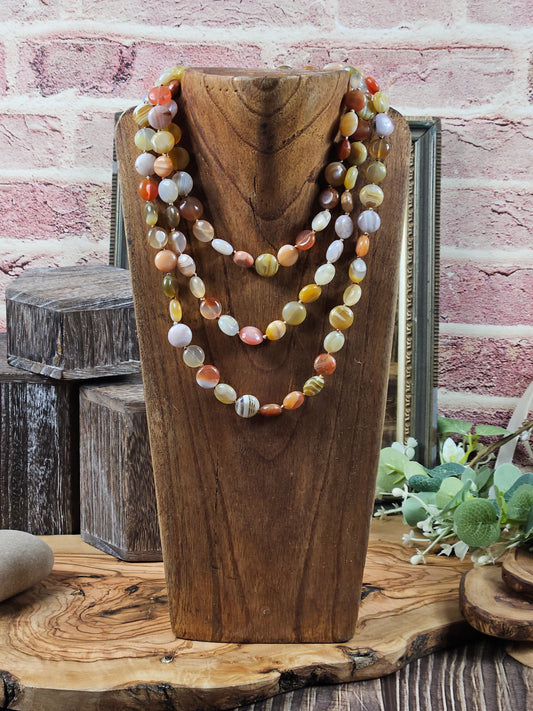 Extra long Beaded necklace made of natural agate, VGC, L900