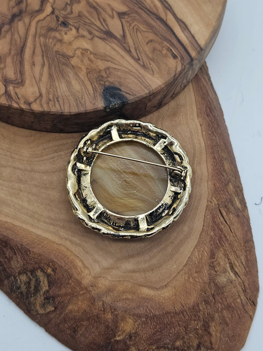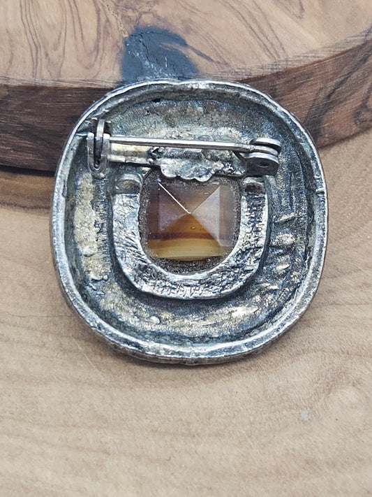 Vintage Large Round Brooch with large yellow insert L812