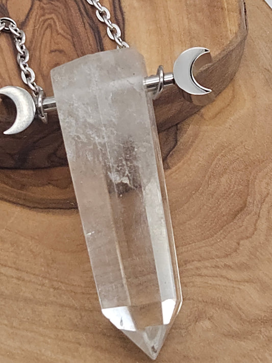 Magic Large Quartz Cristal Pendant with Chain, Brand New