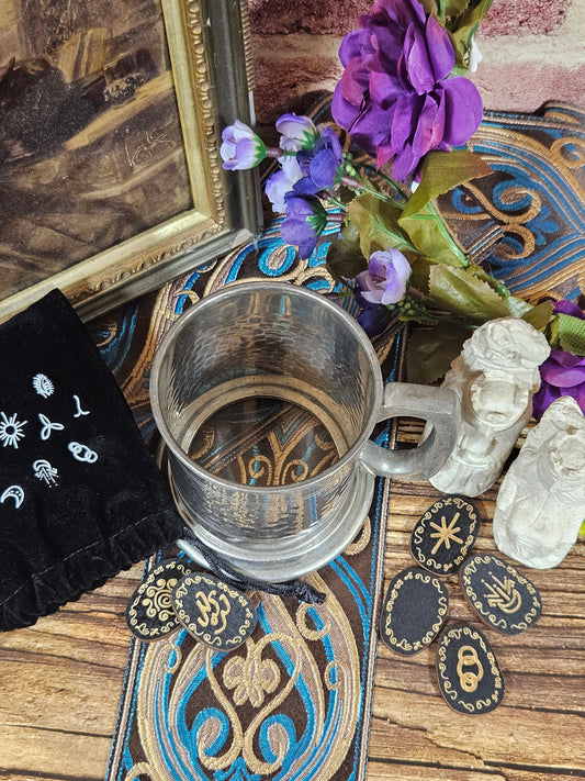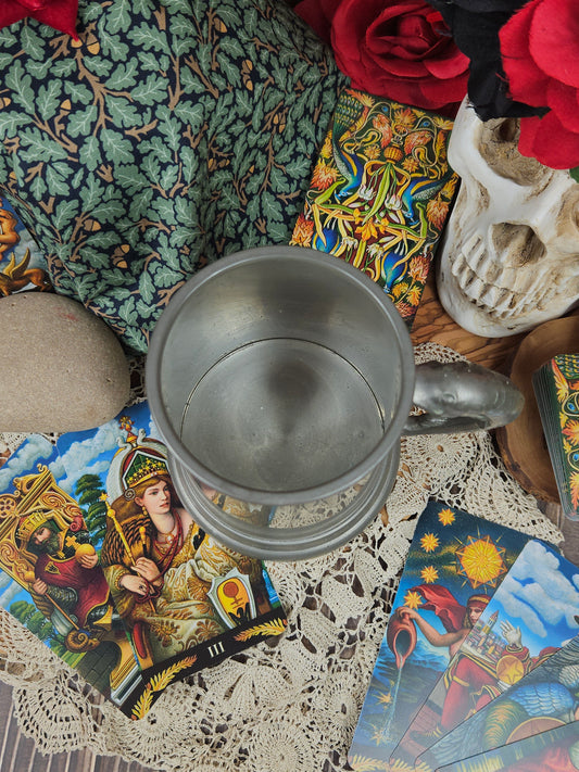 Vintage pewter tankard, clear (glass) bottom, VGC Sheffield