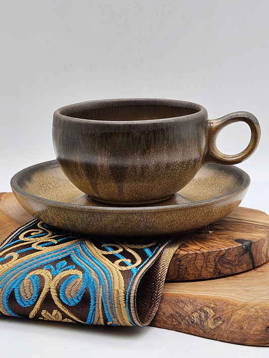 Studio Pottery vintage Tea/coffee pair medieval style, Kent ET8025