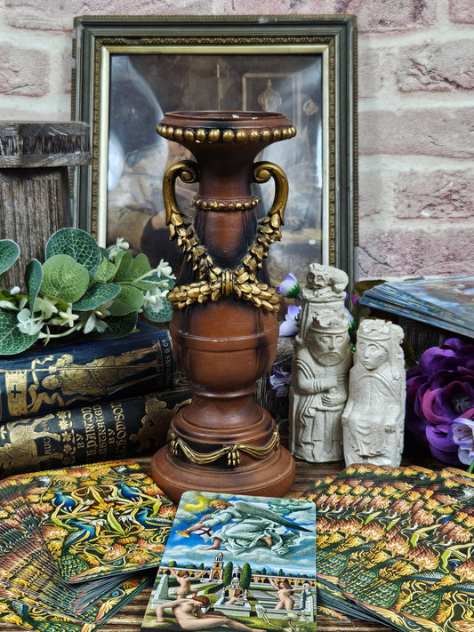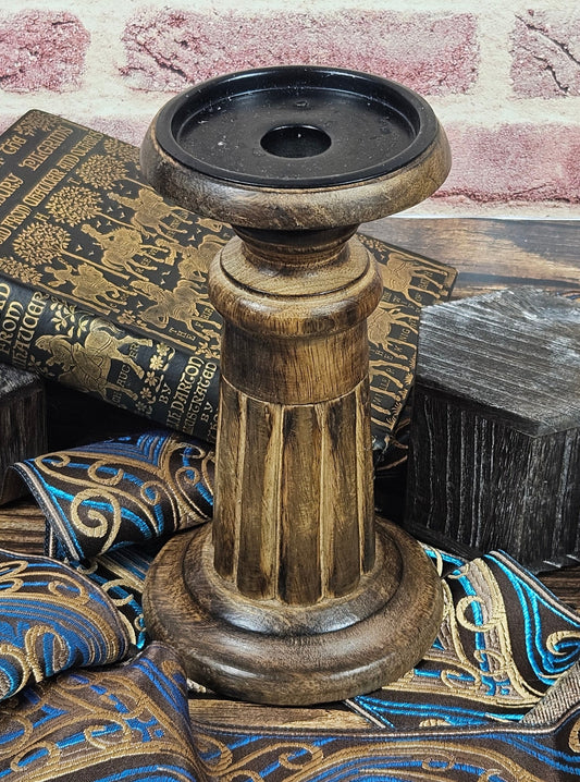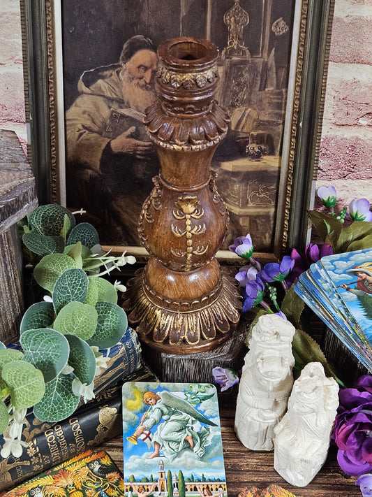 Vintage Richly decorated Candle stick Holder 20 cm, Resin/Wood