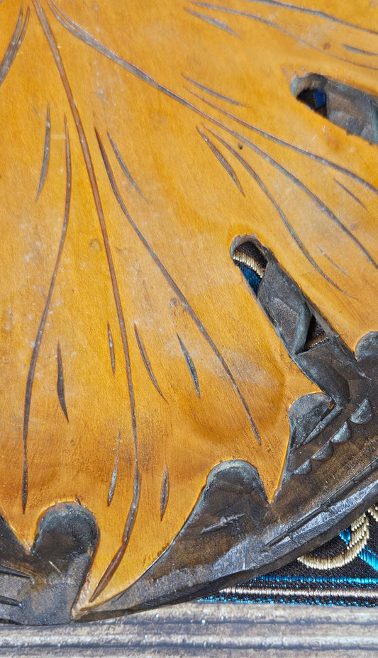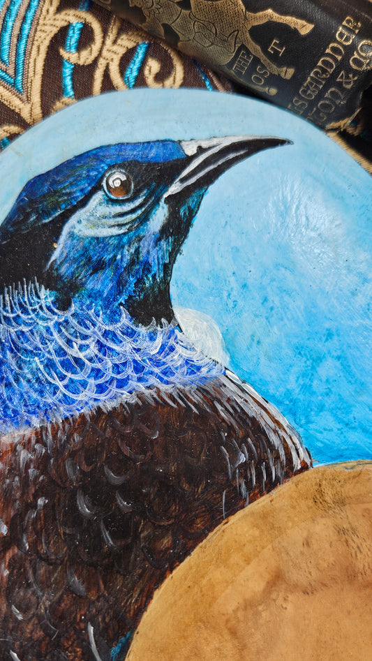 Vintage Hand carved and painted decorative wooden dish with Blue Bird