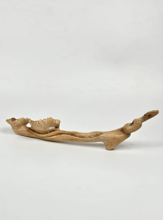 Fantastic Vintage Hand carved Wooden Snake with mushrooms on the tree branch