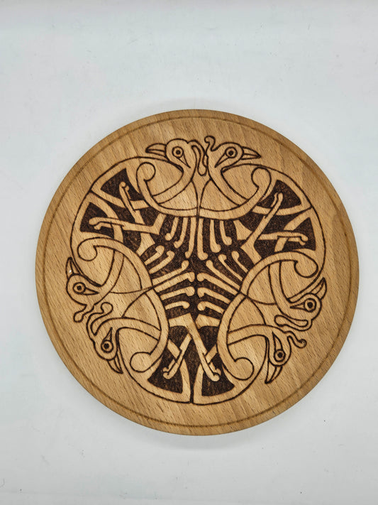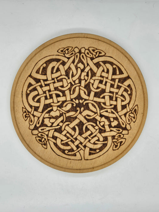Vintage Celtic Wooden Panel or Placemat with Ornament, Handcrafted
