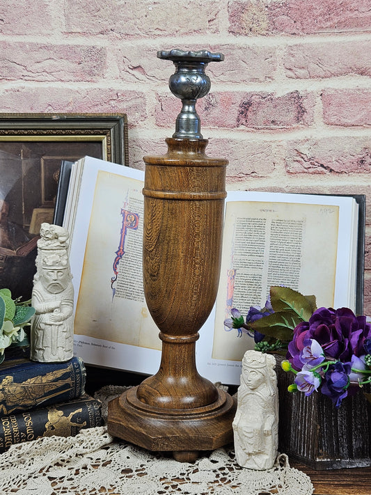 Vintage Large Hand turned Candle stick Holder 31 cm, Wood